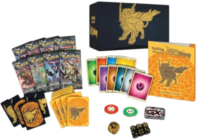 Inside of each Pokémon Ultra Prism Elite Trainer Box (Dusk Mane Necrozma) you will find eight Pokémon Ultra Prism booster packs, 65 card sleeves featuring Dusk Mane Necrozma, 45 Pokémon TCG Energy cards, a player’s guide to Sun & Moon Ultra Prism, assorted gameplay accessories, a collector’s box to hold everything, and a code for the online Pokémon card game.