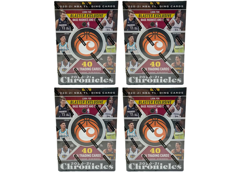 With each order of this Panini Basketball card product, you will receive four (4) 2020-21 Panini Chronicles Basketball Blaster Boxes. To see a full product description for the 2020-21 Panini Chronicles Basketball Blaster Box click here.