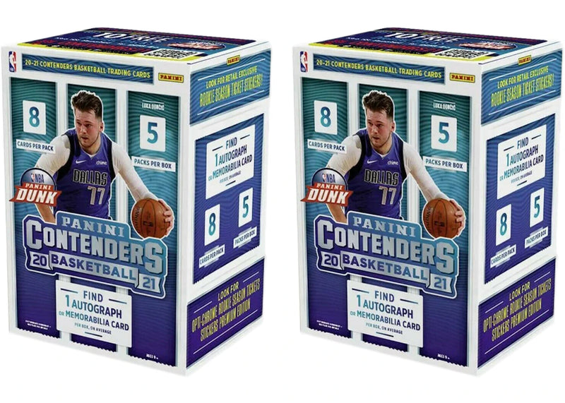 With your order you will receive two (2) 2020-21 Panini Contenders Basketball Blaster Boxes. Each box averages one autograph or memorabilia card, if you would like additional information regarding the 2020-21 Panini Contenders Basketball Blaster Box, you can click here.