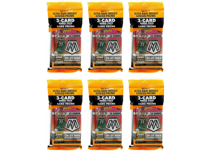 Each order comes with six (6) 2020-21 Panini Mosaic Basketball Cello Packs.