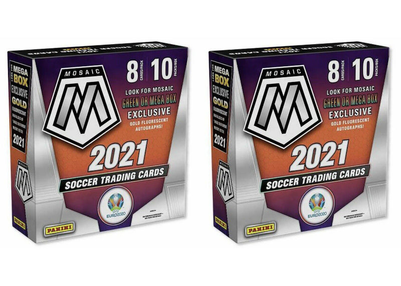 2020-21 Panini Mosaic UEFA Euro Soccer Mega Box (Gold Fluorescent Autographs) 2x Lot