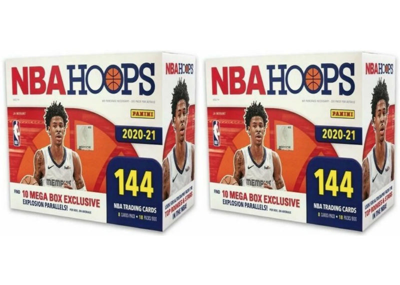 This Panini basketball card product includes two (2) 2020-21 NBA Hoops Basketball Mega Boxes (144 Cards). For more information on this Panini basketball card product, you can click here....