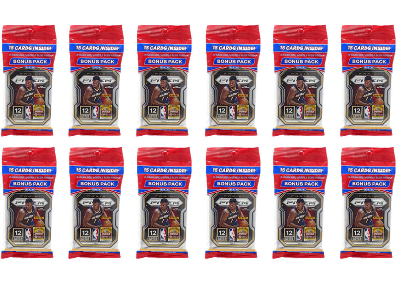 The 2020-21 Panini Prizm Basketball Cello Pack comes with 15 total cards - one 12 card value pack, and one 3 card Red, White & Blue Prizm Bonus pack.