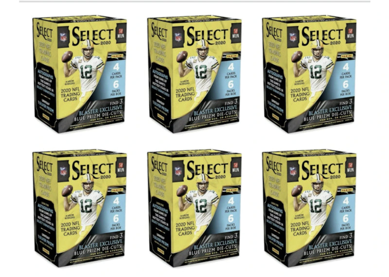 Panini Select Football has historically been a Hobby Box only product, but the 2020 edition has introduced retail blaster boxes to the set for the first time since it was reintroduced in 2013. You will receive six (6) 2020 Panini Select Blaster Boxes with your order. For more information on what comes in each blaster box click here.