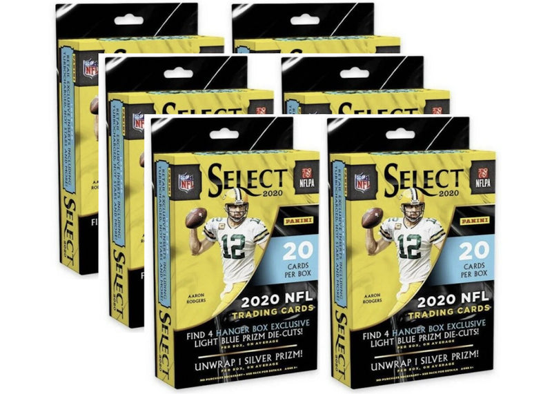 With each purchase of this Panini Football card product, you will receive six (6) 2020 Panini Select Football Hanger Boxes with Light Blue Die Cuts. IF you would like to see a full product description for this Panini Football card box click here