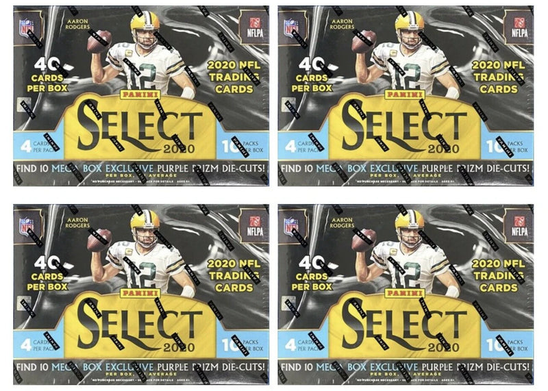 Each order of this Panini Football product comes equipped with four (4) 2020 Panini Select Football Mega Boxes featuring Purple Die Cut Parallels. For additional details on this 2020 Panini Football set and box, you can click here.