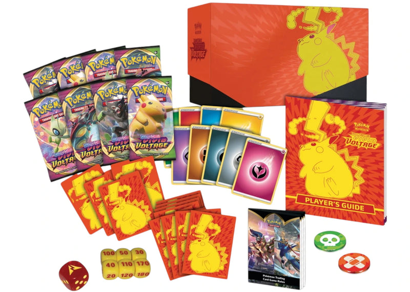 Unleash the maximum power of Pokémon V and Pokémon VMAX with the 2020 Pokémon TCG Sword & Shield - Vivid Voltage Elite Trainer Box! Released on November 13, 2020, look for the newly discovered Mythical Pokémon Zarude and the majesty of Gigantamax Pikachu. Each Pokémon TCG: Sword & Shield - Vivid Voltage Elite Trainer Box includes 8 Pokémon TCG Booster Packs, 65 card sleeves featuring Gigantamax Pikachu, 45 Pokémon TCG Energy cards, a player’s guide to the Vivid Voltage expansion, a Pokémon TCG rulebook, 6 damage-counter dice, 1 competition legal coin-flip die, and a collector’s box to hold everything with 4 dividers to keep it organized.