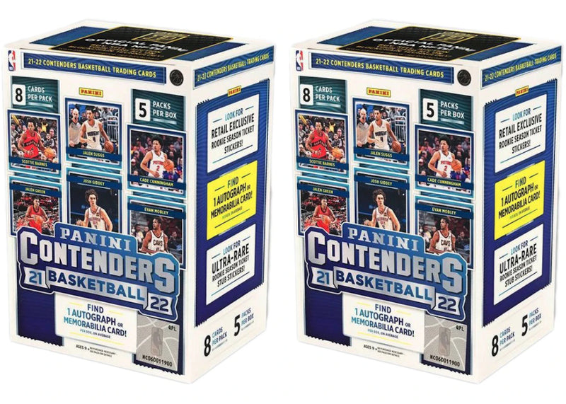 With your purchase, you will receive two (2) 2021-22 Panini Contenders Basketball Blaster Boxes.