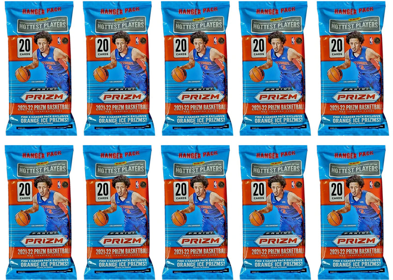 The 2021 22 Panini Prizm Basketball Hanger Pack Orange Ice Prizms 10x Lot is a 10-pack set of collectible cards from the Panini Prizm Basketball series based on the 2021/2022 NBA season.