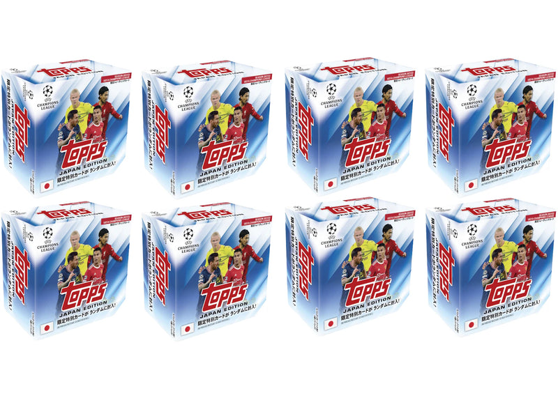 The 2021–22 Topps Champions League UEFA Football Japan Edition Hobby Box 8x Lot is a set of eight hobby boxes with collectible sports trading cards related to the UEFA Champions League. Each box contains seven packs and each pack offers 10 cards.