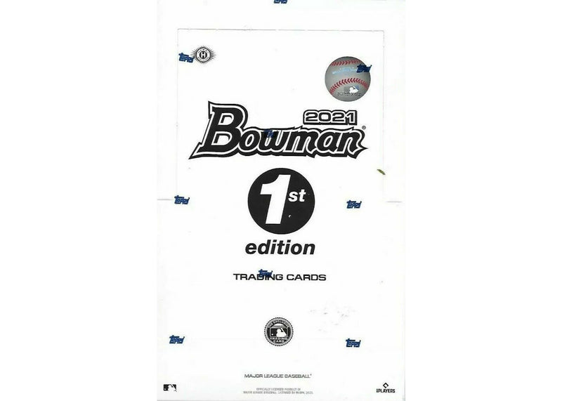 The 2021 Bowman 1st Edition Baseball Hobby Box kicks off the release calendar for the popular Bowman baseball set. This product used to be an online exclusive offered only through Topps website, but in 2021 the product began showing up at local card shops and on the secondary market as it was made available to Topps MVP Hobby accounts prior to the online release that took place on March 22. The As always, the Bowman set is a prospect heavy product with a focus on player's first baseball cards (1st Bowman's) in a 150 card base set checklist. The set serves as a preview of the full Bowman Baseball that released later in Spring 2021, and features a special "1st Edition" stamp on each card.
