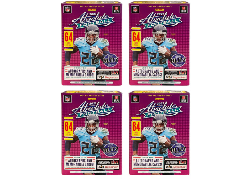 With your order you will receive four (4) 2021 Panini Absolute Football Blaster Boxes. For more information regarding the 2021 Panini Absolute Football Blaster Box, you can click here.