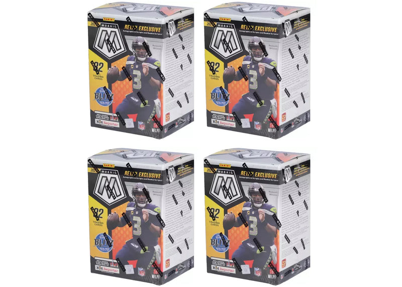 With your purchase, you will receive four (4) 2021 Panini Mosaic Football Fanatics Exclusive Blaster Boxes.