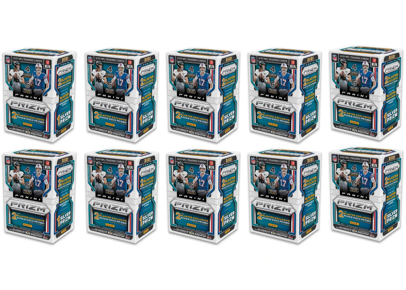 The 2021 Panini Prizm Football Blaster Box Disco Prizms 10x Lot comes with a total of 10 Football Blaster Boxes, with each box featuring 5 NPP blaster and exclusive Lazer Prizms.