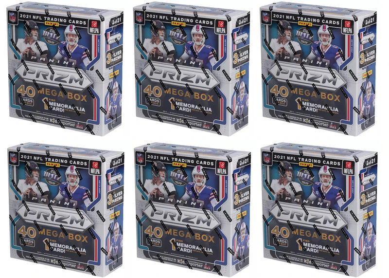 The 2021 Panini Prizm Football Mega Box (Green Pulsars) 6x Lot is a 6-box set of NFL trading cards released as part of the 2021 Prizm Football collection by Panini.
