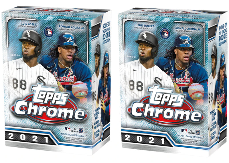 The 2021 Topps Chrome Baseball Blaster Box comes with four cards per pack and seven packs plus one bonus pack that holds four Sepia Refractors. The 2021 Topps Chrome Baseball Blaster Box released in August 2021. With your order you will receive two (2) 2021 Topps Chrome Baseball Blaster Boxes.