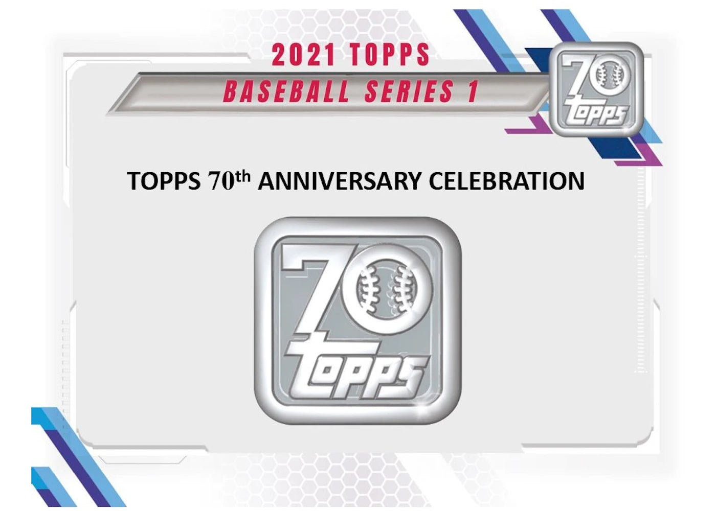 Topps baseball cards are celebrating their 70th anniversary and that is reflected in the 2021 Topps Series 1 Baseball set. The base set checklist this year includes 330 total cards and offers a plethora of parallels including platinum anniversary parallels (#/70). Rookie cards for Jo Adell, Casey Mize, and many more are included!