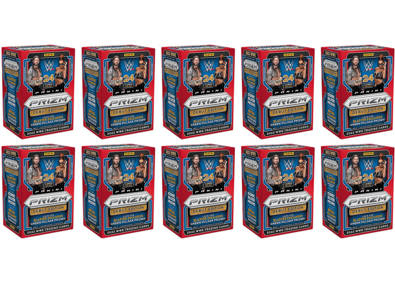 With your purchase, you will receive ten (10) 2022 Panini Prizm WWE Wrestling Blaster Boxes.
