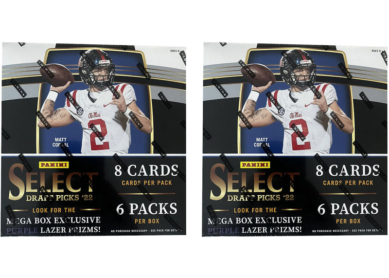 2022 Panini Select Draft Picks Collegiate Football Mega Box (Purple Lazer Prizms) 2x Lot