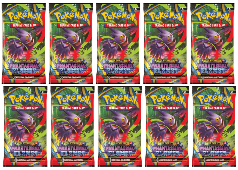 2025 Pokémon Mega Evolution Phantasmal Flames Mega Gengar Booster Pack 10x Lot