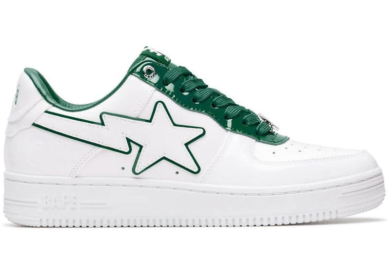 The A Bathing Ape Bape Sta Patent Leather White Green is now available at Side Kicks!