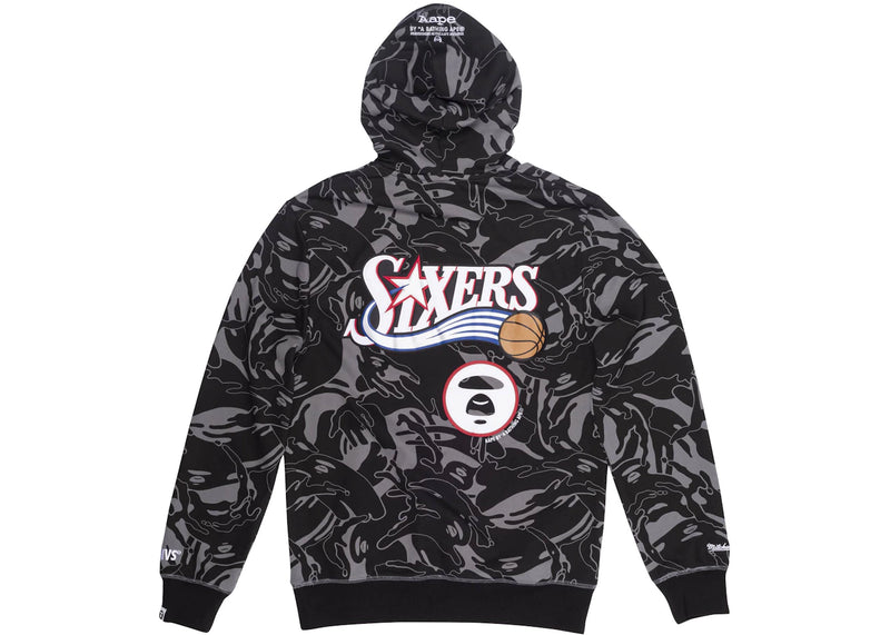 The Aape x Mitchell & Ness Philadelphia 76ers Hoodie Black is now available at Side Kicks!