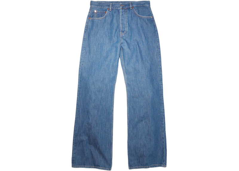 The Acne Studios Mid Rise Loose Bootcut Rigid Denim Jeans Dark Blue Trash is now available at Side Kicks!