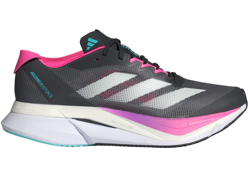 The adidas Adizero Boston 12 Grey Five Crystal Jade Lucid Pink (Women's) is now available at Side Kicks!