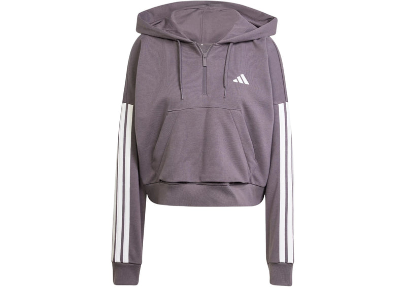 The adidas Essentials 3-Stripes French Terry Quarter-Zip Hoodie Grey Strata/White is now available at Side Kicks!