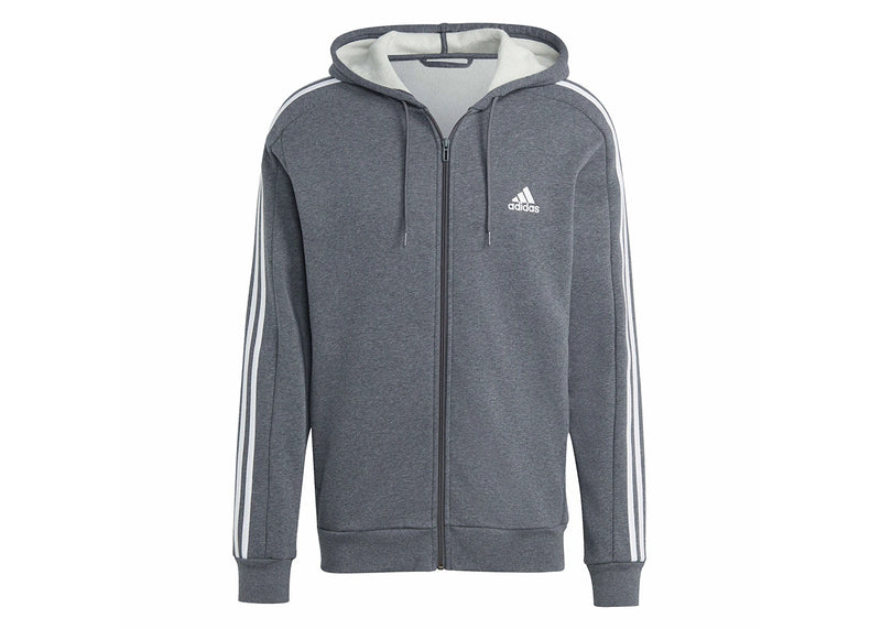 The adidas Essentials Fleece 3-Stripes Full-Zip Hoodie Dark Grey Heather is now available at Side Kicks!