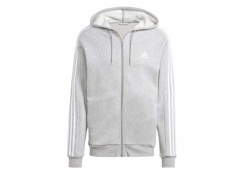 The adidas Essentials Fleece 3-Stripes Full-Zip Hoodie Medium Grey Heather is now available at Side Kicks!
