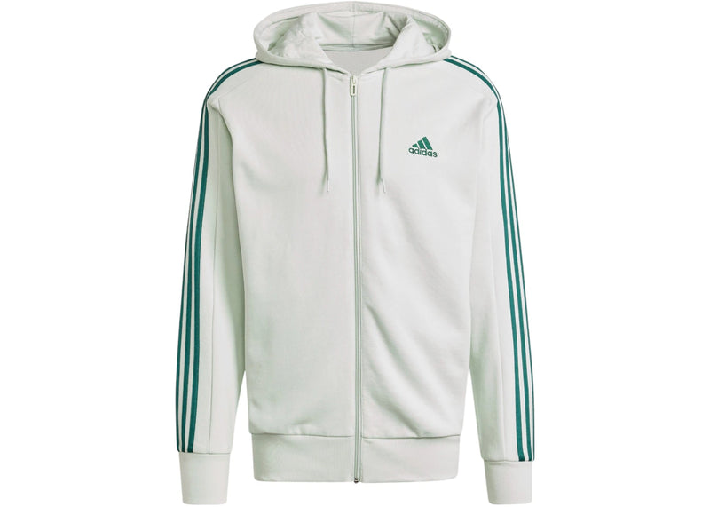 The adidas Essentials French Terry 3-Stripes Full-Zip Hoodie Linen Green is now available at Side Kicks!