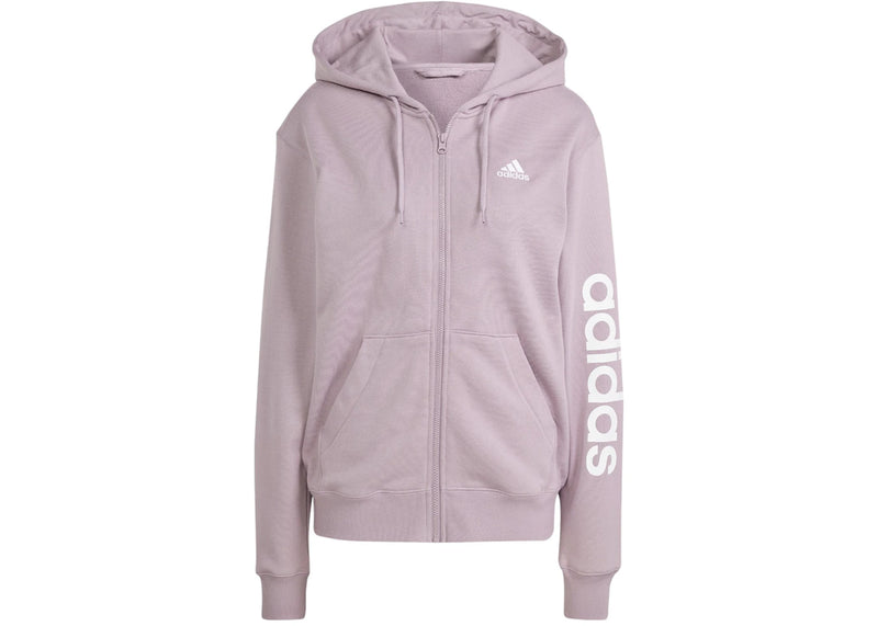 The adidas Essentials Linear Full-Zip French Terry Hoodie Preloved Fig/White is now available at Side Kicks!