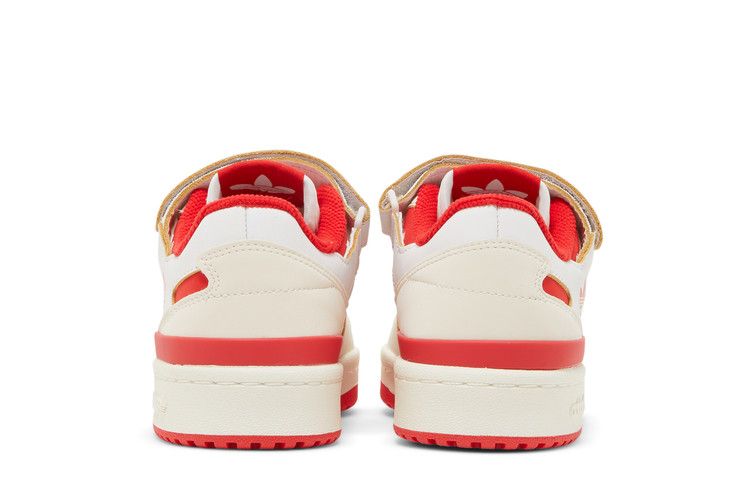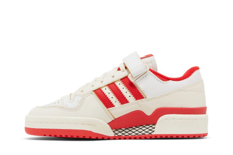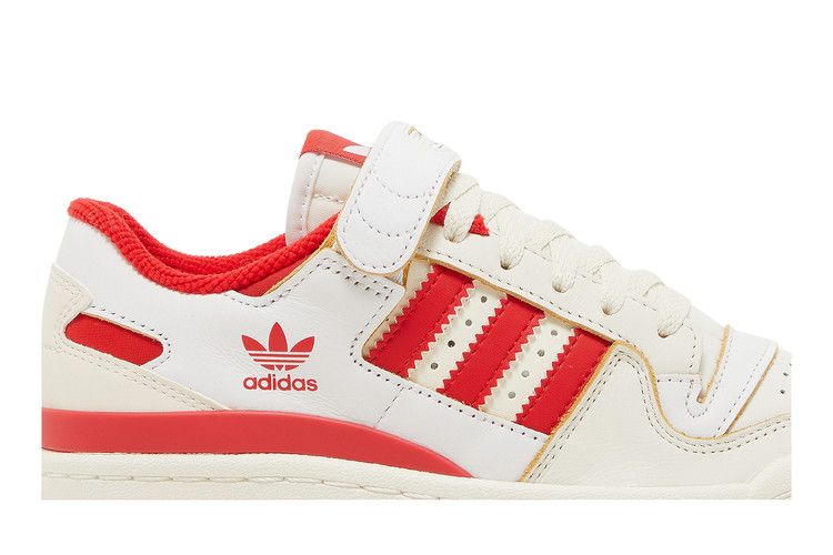 The adidas Forum 84 Low Off White Vivid Red Footwear White (Women's) draws inspiration from 1980s basketball shoes. The design features Off White leather with Vivid Red accents, creating a collegiate sports aesthetic.