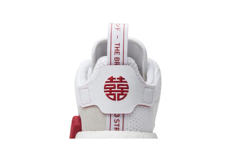 The adidas NMD R2 Chinese New Year 2018 features a black Primeknit upper with red and gold accents, including embroidered Chinese characters on the heel tab. It includes a Boost...