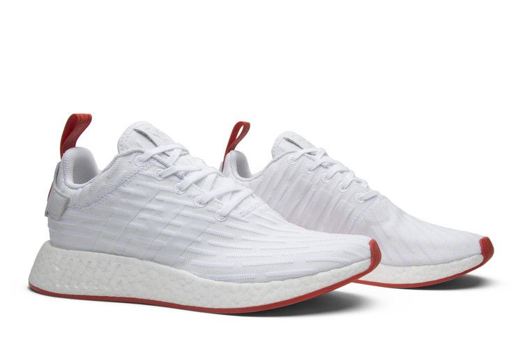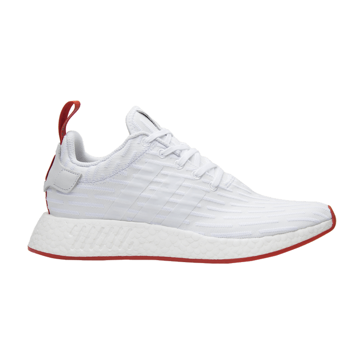 The adidas NMD R2 White Core Red Two Toned features a white base with bold red accents for a striking two-tone effect. Its sock-like construction provides a snug, supportive fit,...