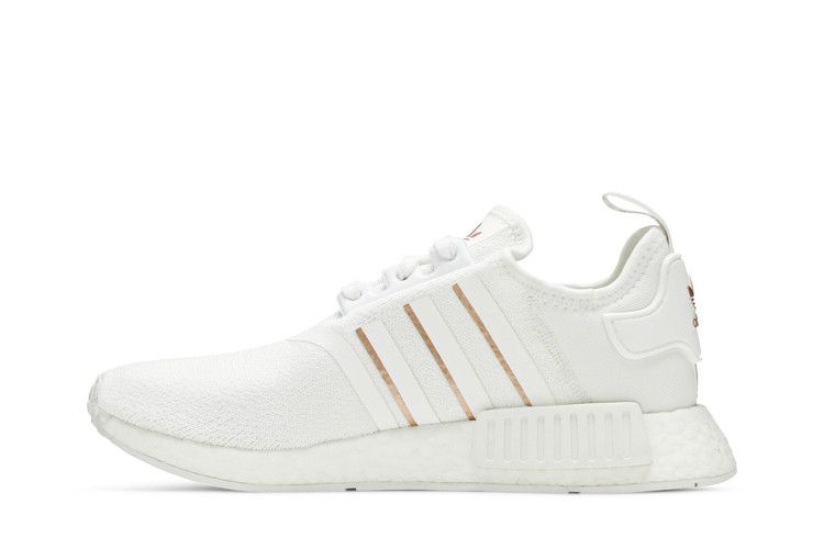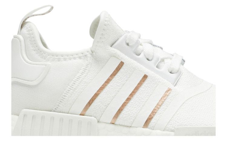 The adidas NMD_R1 Cloud White Rose Gold (Women's) features a textile upper, Boost midsole, and durable rubber outsole. It includes a front lace closure and branded insole for secure fit....