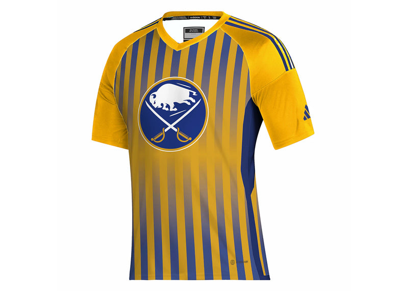 The adidas Sabres Hockey Tee Team Colleg Gold/Royal Blue/Multi is now available at Side Kicks!