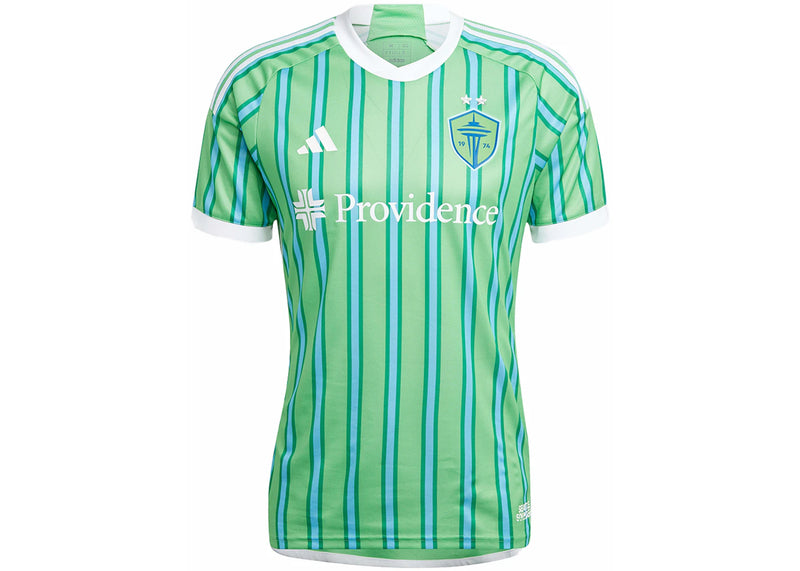 The adidas Seattle Sounders FC 24/25 Home Authentic Jersey Semi Solar Lime/Semi Blue Burst is now available at Side Kicks!