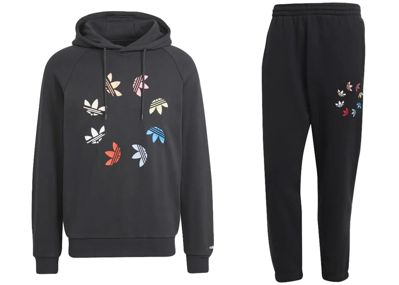 The adidas Shattered Trifoil Pullover Hoodie & Sweatpant Set Black/Multicolor is now available at Side Kicks!