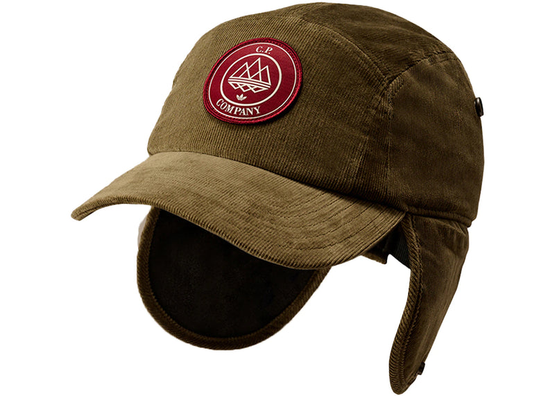 The adidas SPZL x C.P. Company Corduroy Settend Earflap Cap Beech/Green is now available at Side Kicks!