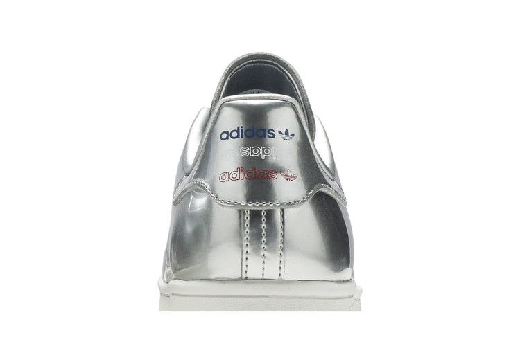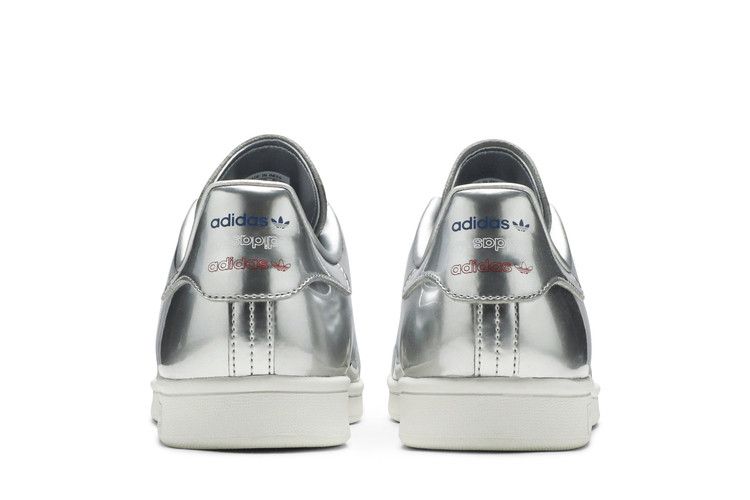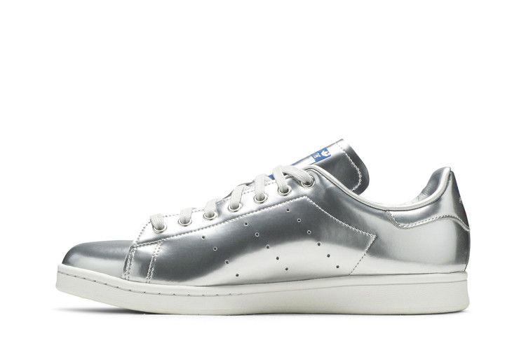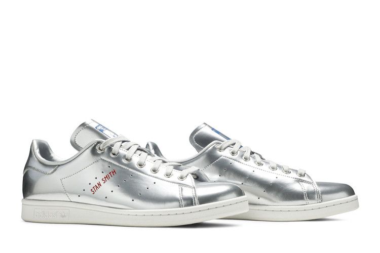 The adidas Stan Smith Silver Metallic (2019) features a low-top textile upper with a silver metallic coating. The perforated 3-Stripes side panel and silver heel tab complement the red Stan...
