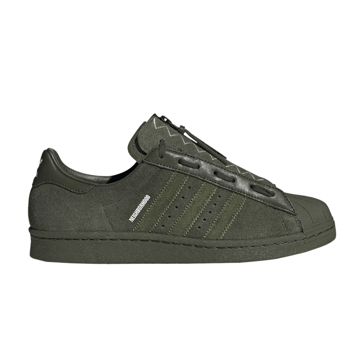 The adidas Superstar 80s Neighborhood Olive is now available at Side Kicks!