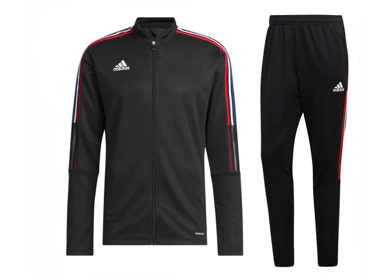 The adidas Tiro 21 Track Jacket & Pant Set Black/Vivid Red/White/Royal Blue is now available at Side Kicks!