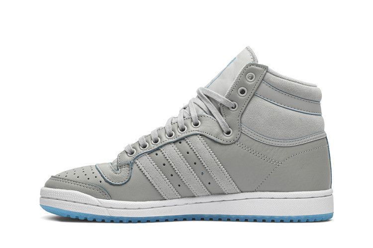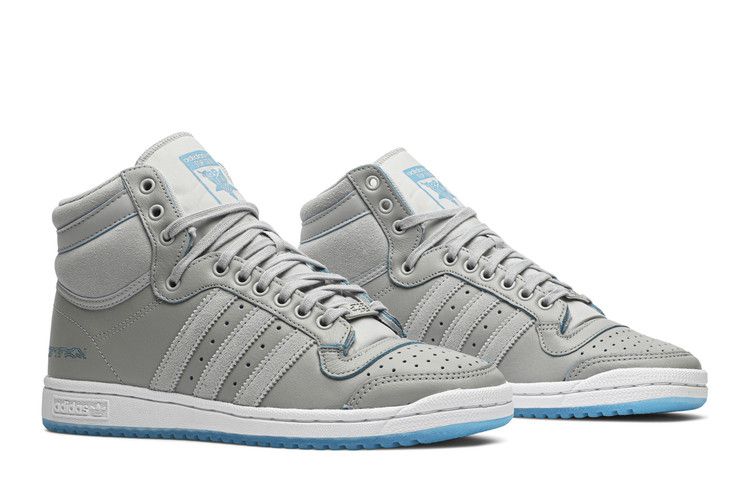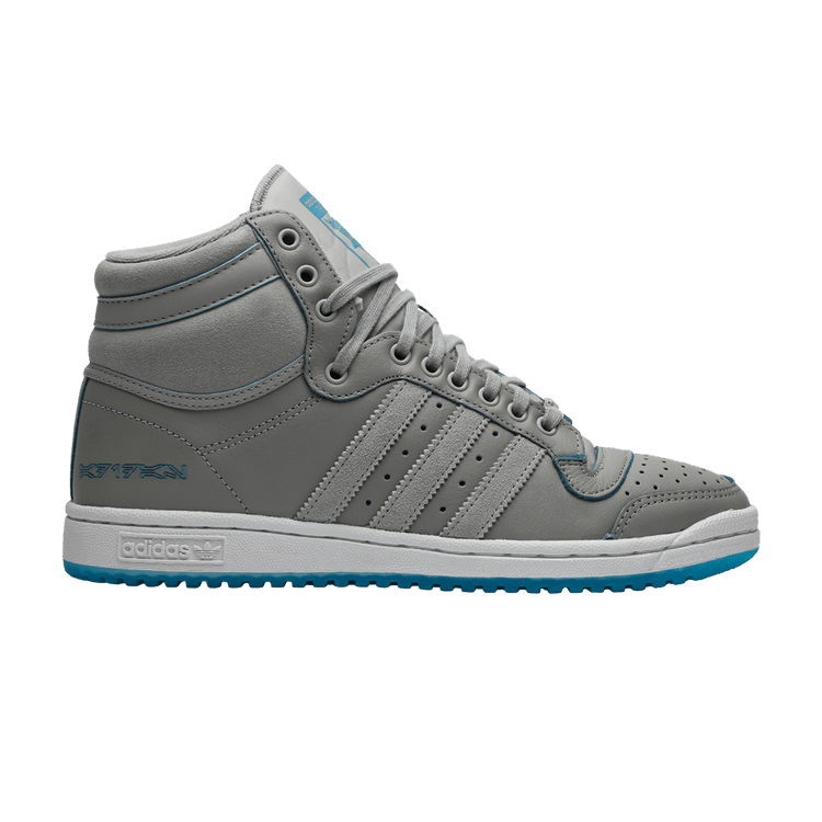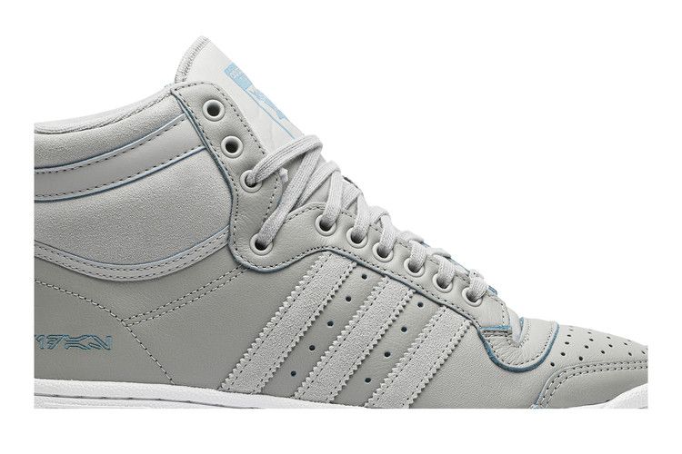 The adidas Top Ten Hi Star Wars Obi-Wan Kenobi features a gray leather upper with light gray suede accents on the 3-Stripes and ankle collar. Light blue detailing appears on...