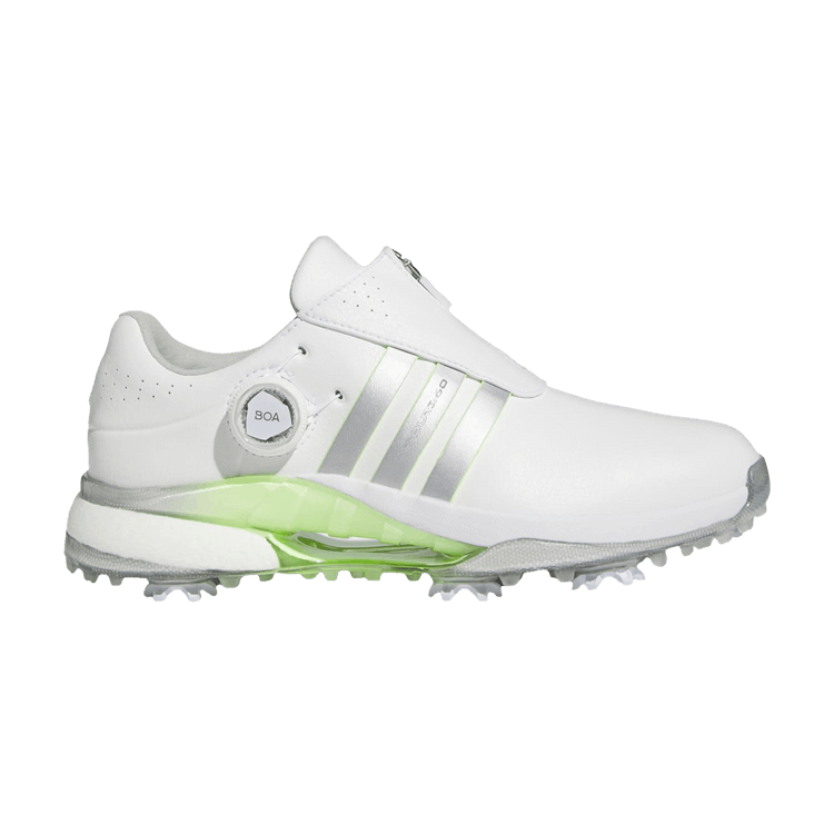 adidas Tour360 24 BOA Microfiber Golf Cloud White Silver Metallic Green Spark (Women's)