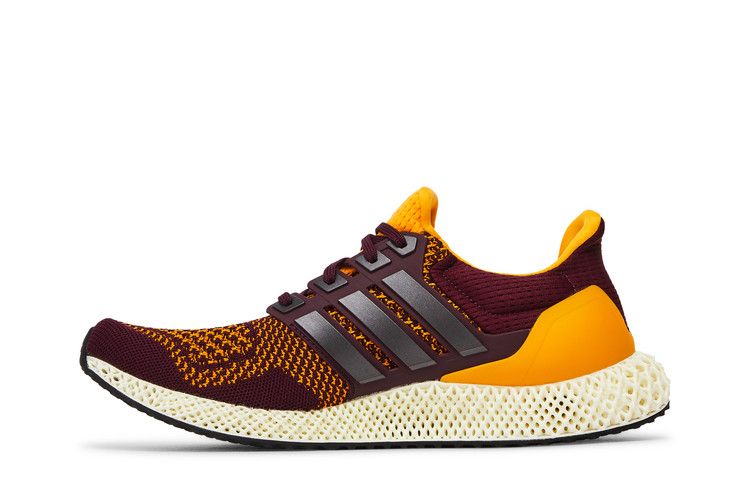 The adidas Ultra 4D Arizona State features a PRIMEKNIT upper for lightweight breathability, with a padded foam collar for ankle support. The maroon and Semi Solar Gold colorway reflects Arizona...