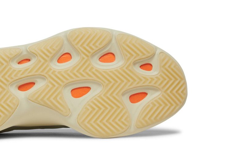 The adidas Yeezy 700 v3 Fade Salt has a glow-in-the-dark RPU cage over a Primeknit upper, with an exposed tongue and laces at the forefoot. The inner construction ensures a snug fit, while the midsole combines polyurethane with full-length EVA cushioning. The rubber outsole features herringbone traction with added grip pods.