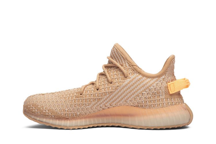 The Yeezy Boost 350 V2 Clay (Kids) features a PrimeKnit upper in an Orange-Brown hue with Orange accents on the heel tab, side stripes, and sole. White detailing contrasts the...