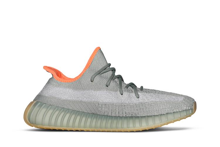The adidas Yeezy Boost 350 V2 Desert Sage features a pale green Primeknit upper with reflective detailing on the side stripe. Orange accents on the collar lining and sockliner add...